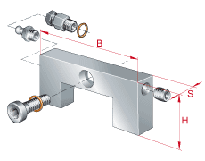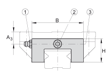 - 在系列 KUE..-H,潤滑脂嘴或者潤滑油接頭大約伸出滑塊 9mm。 潤滑脂嘴和堵頭螺栓可互換使用,螺紋相同。