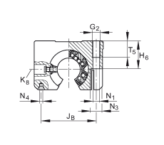 - 尺寸 L6 在軸承長度 L 上是對稱的。