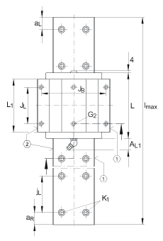 - 對(duì)于從上面安裝: 最大中間螺紋孔的螺紋深度 T6 + 2,5 mm
