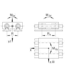 - 基本額定載荷:載荷方向 Z III: 當載荷均勻分布在四個直線球軸承上的基本額定載荷。 基本載荷和扭矩不能同時增加。